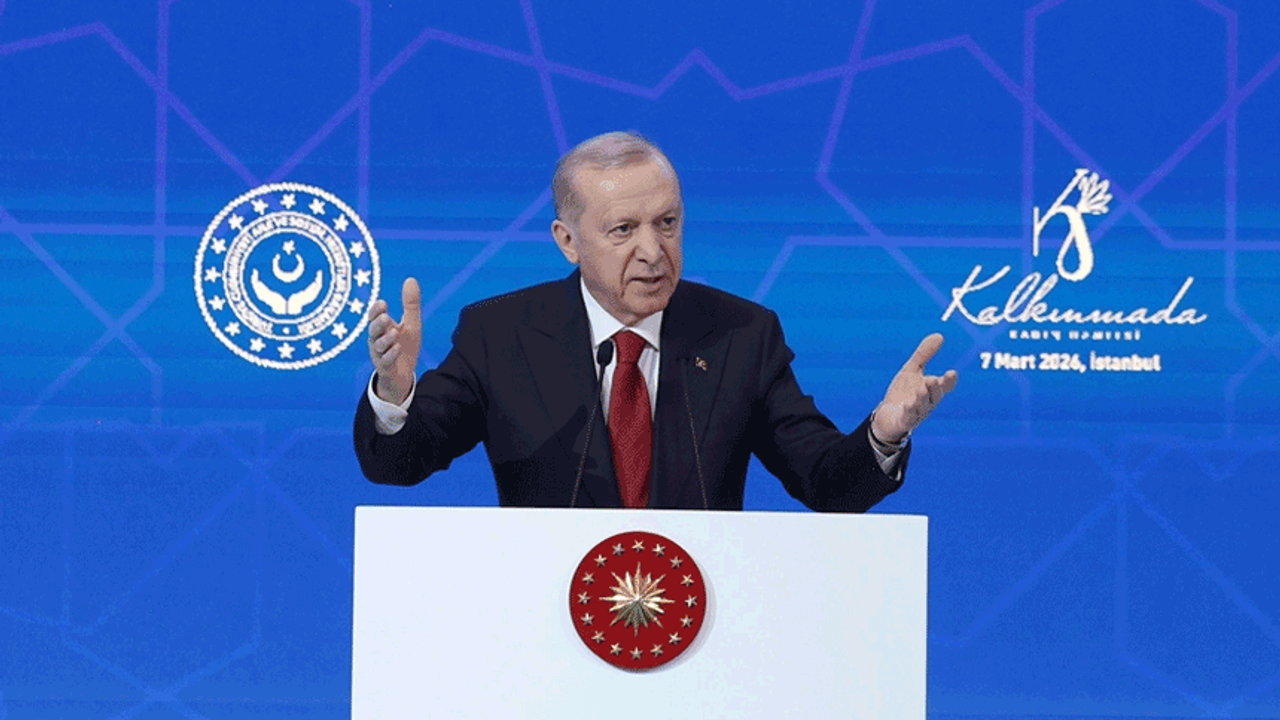 Dünya Kadınlar Günü'nü küresel ölçekte kadın sorunlarının ağırlaştığı, özellikle yakın çevrelerinde kadınların çok zor günler yaşadığı bir dönemde karşıladıklarını belirten Erdoğan, "Elini vicdanına koyan herkes inanıyorum ki şu tabloyu çok net görebiliyor. Bugün maalesef başta bölgemiz olmak üzere dünyanın farklı yerlerinde çatışma var, bunun acısını en çok kadınlar çekiyor. Bugün dünya büyük bir gelir dağılımı adaletsizliğiyle karşı karşıya, bundan en çok kadınlar mağdur oluyor. Bugün dünyada batıl inançlardan, asabiyeden, yanlış örf ve adetlerden kaynaklanan ayrımcılık var. Bu durum en çok kadınları olumsuz etkiliyor. Bugün dünyayı devasa bir markete dönüştüren tüketim çarkı, öncelikle kadınlık onurunu hedef alıyor, en fazla kadın emeğini sömürüyor." diye konuştu.